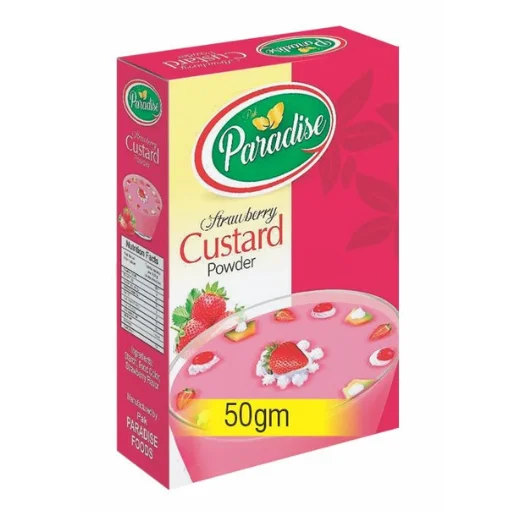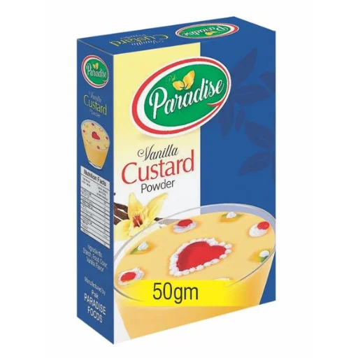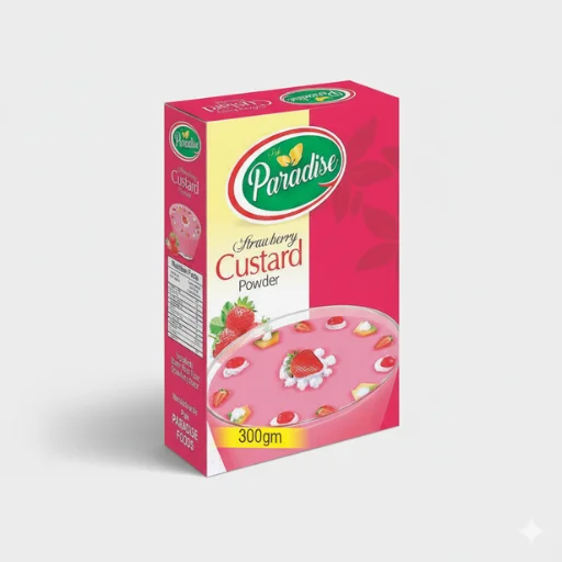 Make every occasion sweet with our smooth and creamy Custard Powder, available in Mango, Banana, Strawberry, and Vanilla flavors. Perfect for quick desserts at home.